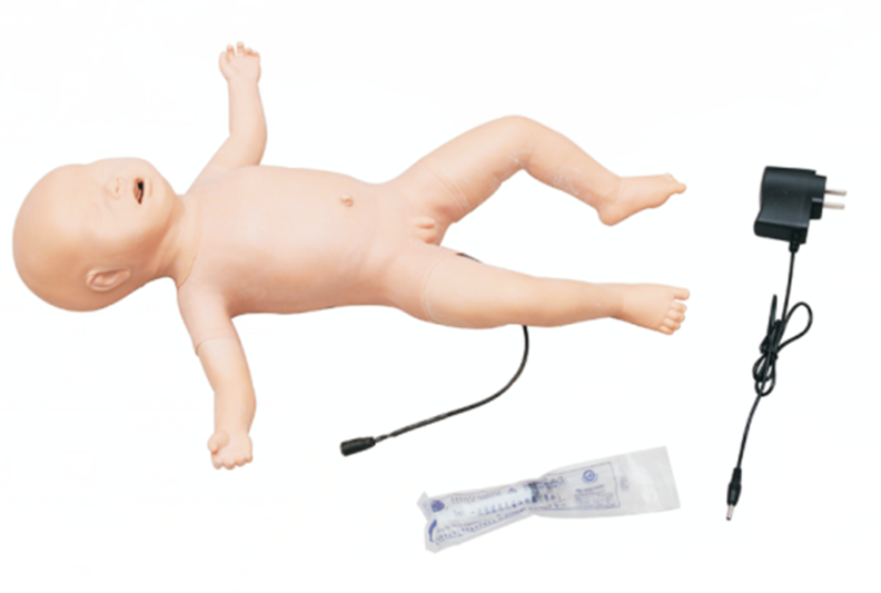 高仿真新生兒輕度窒息搶救模型高仿真新生兒分娩后出現輕度窒息,口唇周圍輕度紫紺。當從新生兒咽部吸出液體后,新生兒口唇周圍青紫消失轉為正常皮膚顏色,拍打(或彈擊)足心,新生兒發出哭聲。該電子標準化病人供學生進行新生兒輕度窒息搶救訓練。