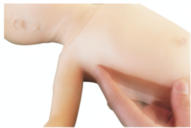 3. 新生兒模型右側腋窩處可觸及電源開關,將開關打開狀態時有語音提示“歡迎使用本公司產品”;