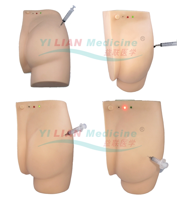 主要功能:• 模擬仿真成人臀部結構,設計精巧輕便,與真實環境更加接近。同時,皮膚質感非常逼真,進針痕跡不明顯。• 解剖精確,有電子報警顯示功能:①穿刺時,針頭插入正常部位,正確深度的綠色燈光顯示。②穿刺時,針頭刺入錯誤的位置紅色燈光顯示及電子報警。