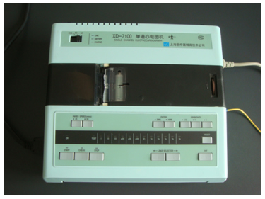 XD-7100單道心電圖機(jī)是一臺具有交直流二用功能、體積小巧、易于攜帶的心電圖機(jī),適用于臨床診斷、搶救及心電監(jiān)護(hù)。 (一)特點 1.本機(jī)設(shè)計安全,符合GB9706.1-95,I類B型及防除顫功能,為被檢查人提供了可靠的安全保證。 2.本機(jī)采用位置反饋記錄裝置,頻響高,阻尼特性好,描記所得心電圖波形清晰、真實。 3.本機(jī)具有交直流二用功能,機(jī)內(nèi)裝有可充電電池的充電裝置,交、直流轉(zhuǎn)換使用極其方便。 4.本機(jī)具有二種干擾抑制電路、即交流干擾抑制及人體肌電干擾抑制,能在各種惡劣的環(huán)境下,獲得較滿意的心電圖記錄。 5.本機(jī)采用輕觸型開關(guān),轉(zhuǎn)換導(dǎo)聯(lián),驅(qū)動走紙均極為方便。 ( 二)主要指標(biāo) 1.電源 交流(220V 50Hz)、直流兩用(自充電)。 2.走紙速度 分25 mm/s 和50 mm/s 兩檔。 3.增益 分1/2、1、2三檔。 4.工作狀態(tài) 分停止、觀察、記錄三檔。 (三)操作規(guī)程 1.接好地線,通電預(yù)熱。 2.定標(biāo) 用1mv 標(biāo)準(zhǔn)電壓的矩形波在記錄紙上應(yīng)顯示10mm 的幅度。 3.連接導(dǎo)聯(lián)線 紅電極連接右上肢,黃電極連接左上肢,綠電極連接左下肢,黑電極連接右下肢,胸電極連接胸部導(dǎo)聯(lián)位置。 4.觀察 利用工作狀態(tài)的觀察檔和移位旋鈕,將心電圖的波形置于記錄紙的中間位置。 5.記錄 觀察心電波形穩(wěn)定后,利用工作狀態(tài)的記錄檔,走紙記錄心電圖。 6.利用導(dǎo)聯(lián)鍵切換不同的導(dǎo)聯(lián)。