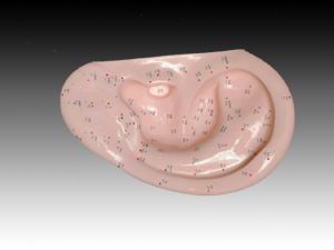 本模型用PVC制成,標(biāo)出了相對(duì)應(yīng)的人體內(nèi)臟和軀體在耳廓上的針穴位置。附穴位使用手冊(cè)。