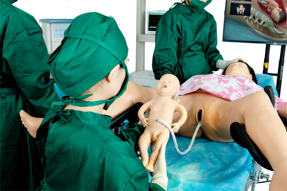 產(chǎn)品包含模擬產(chǎn)婦、模擬胎兒、模擬臍帶和胎盤、系統(tǒng)操作軟件及相關(guān)配套設備、器材等。模擬產(chǎn)婦模型配合臨床思維訓練軟件,以現(xiàn)實和虛擬相結(jié)合,設計了正常分娩、異常分娩、母嬰護理等教學內(nèi)容和考核體系,符合住院醫(yī)師培訓的產(chǎn)科臨床能力培養(yǎng)要求,解決了產(chǎn)科臨床實訓標準操作重點、難點和細節(jié)。