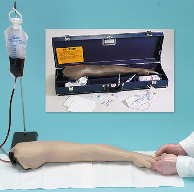 Includes a Life/form® Arm with white skin, blood donor set, infusion set, 3 cc syringe, 12 cc syringe, needle, 1 pint Life/form® Blood, teaching guide, and hard carrying case. Three-year warranty.